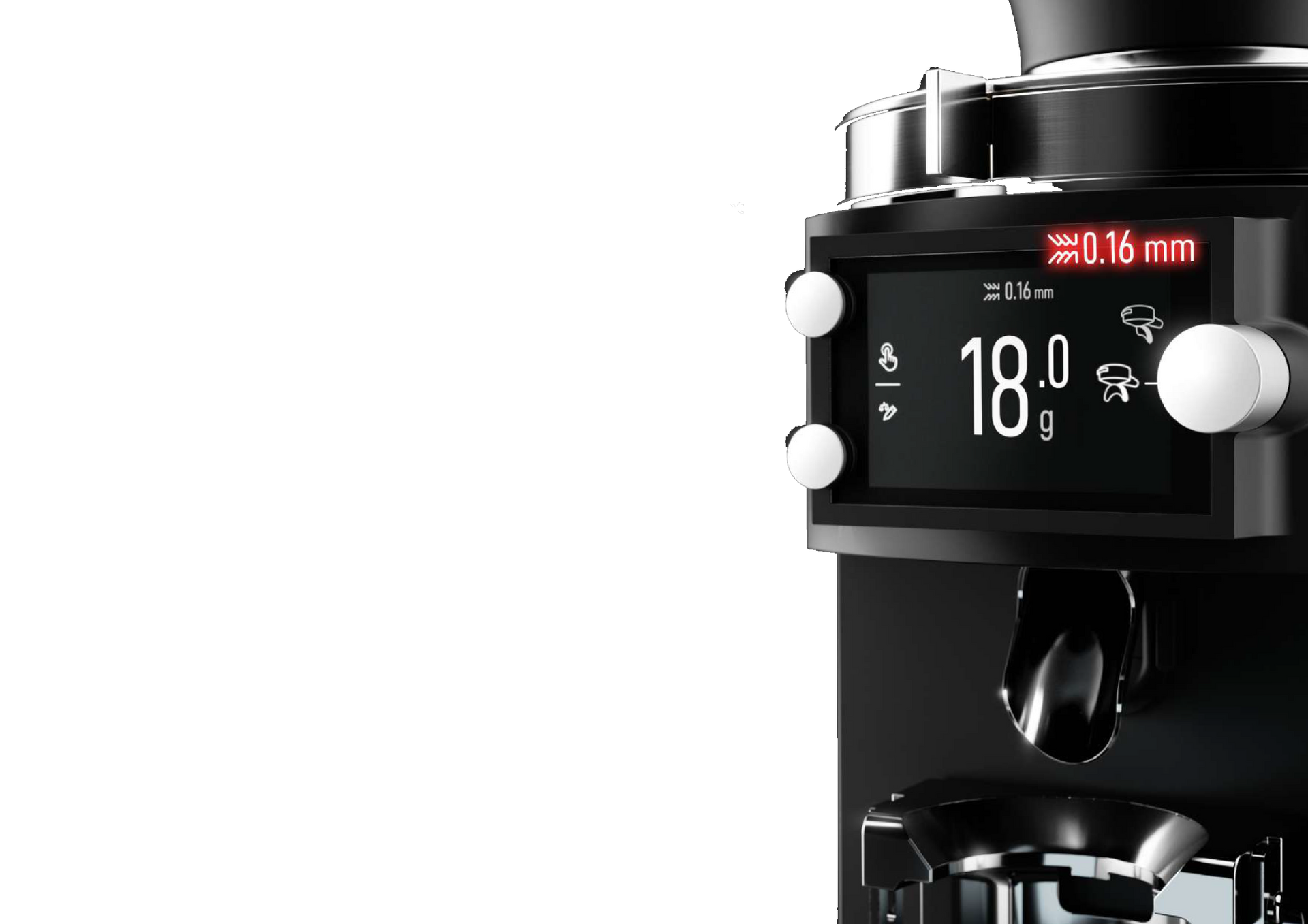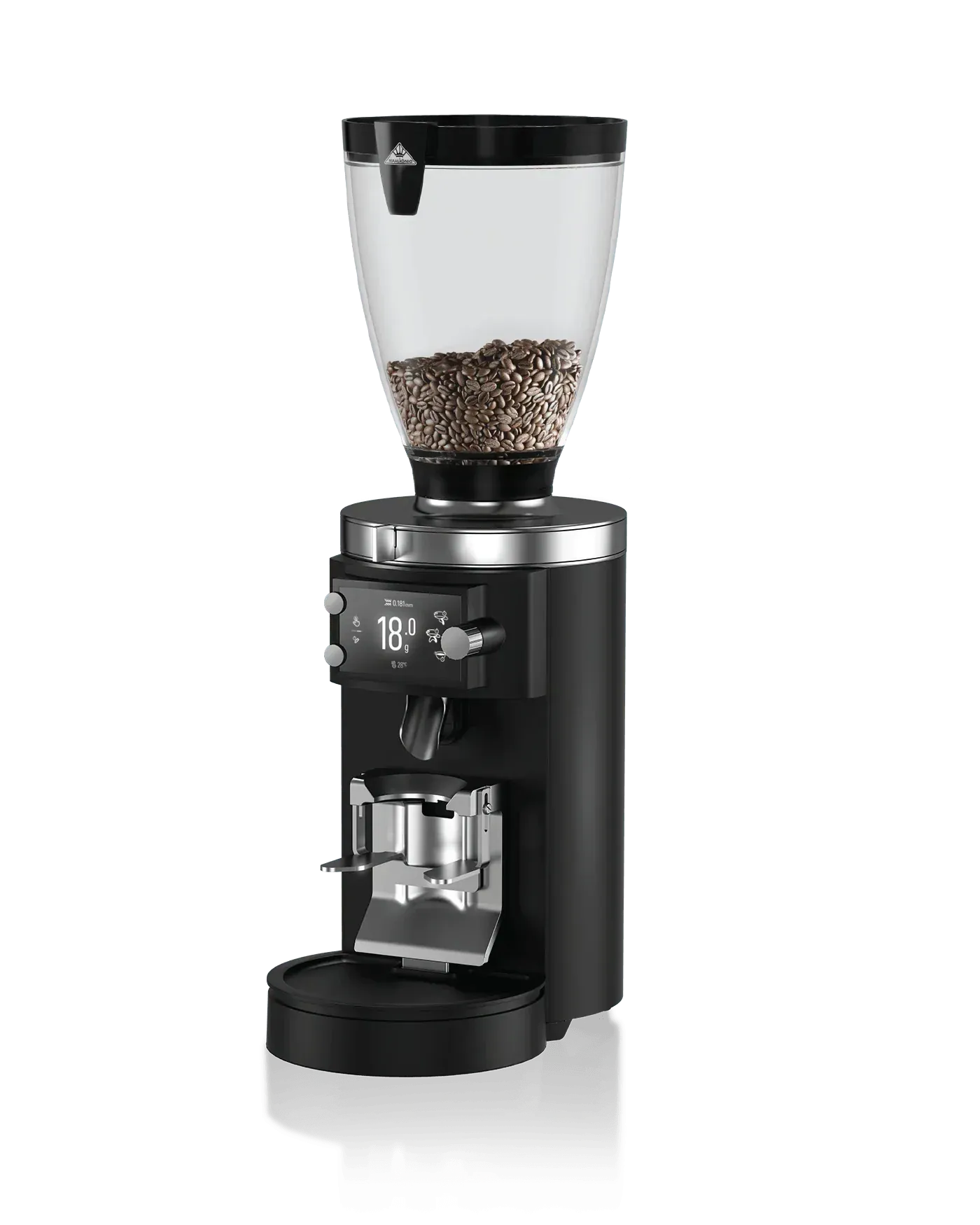 The integrated Portafilter Detection recognizes the portafilter automatically, selects the corresponding grinding preset and starts the grinding process.