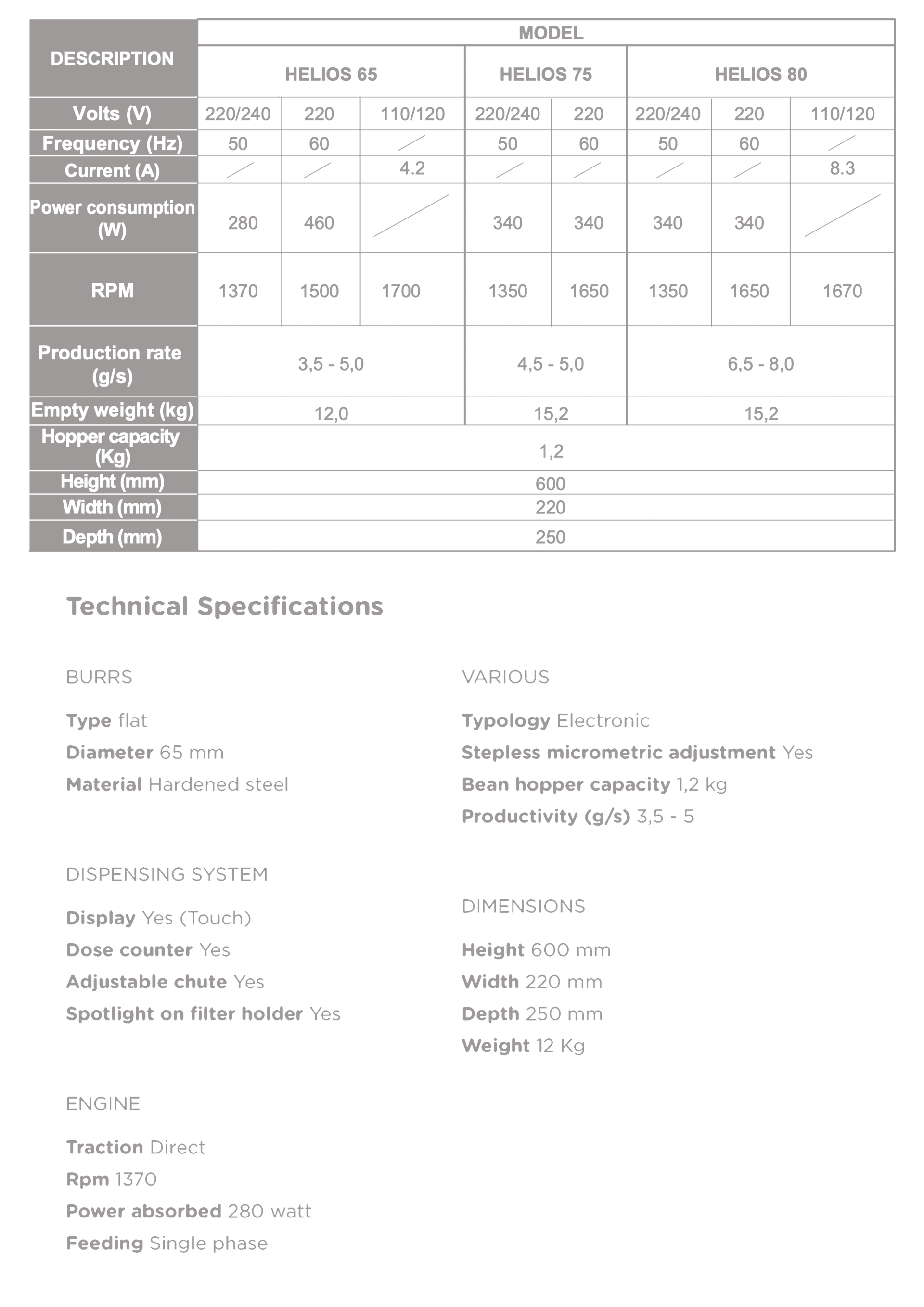 The "High Speed" label marks those grinders able to reach highly reduced dispensing time.